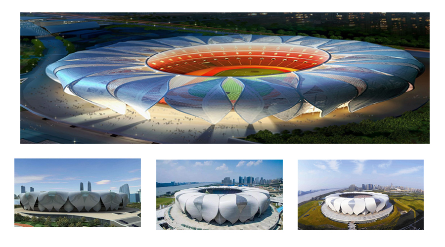案例詳情:主體育場外形似蓮花,造型動感飄逸,由28片大花瓣和27片小花瓣組成。據(jù)介紹,該造型取意于杭州絲綢紋理與紡織體系,建筑體態(tài)源于錢塘江水的動態(tài),擁有簡潔的花瓣單元,猶如一朵美麗的蓮花綻放于錢塘江畔。使用鋁合金的原材料,充分體現(xiàn)材料的可塑性強(qiáng),強(qiáng)度大,能夠滿足設(shè)計師的各種設(shè)計思路。并且具有耐腐蝕、抗紫外線、長時間不褪色等特點。